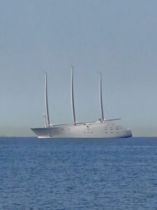 Liegt beschlagnahmt vor Triest, ist eine der teuersten Yachten der Welt, gehört einem russischen Oligarchen, die Besatzung kann nicht an Land, weil keine Visa….